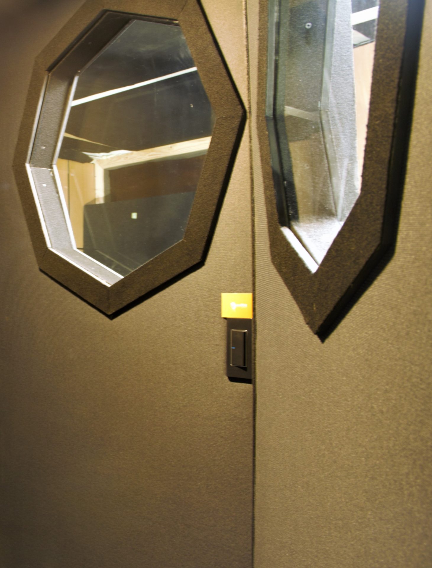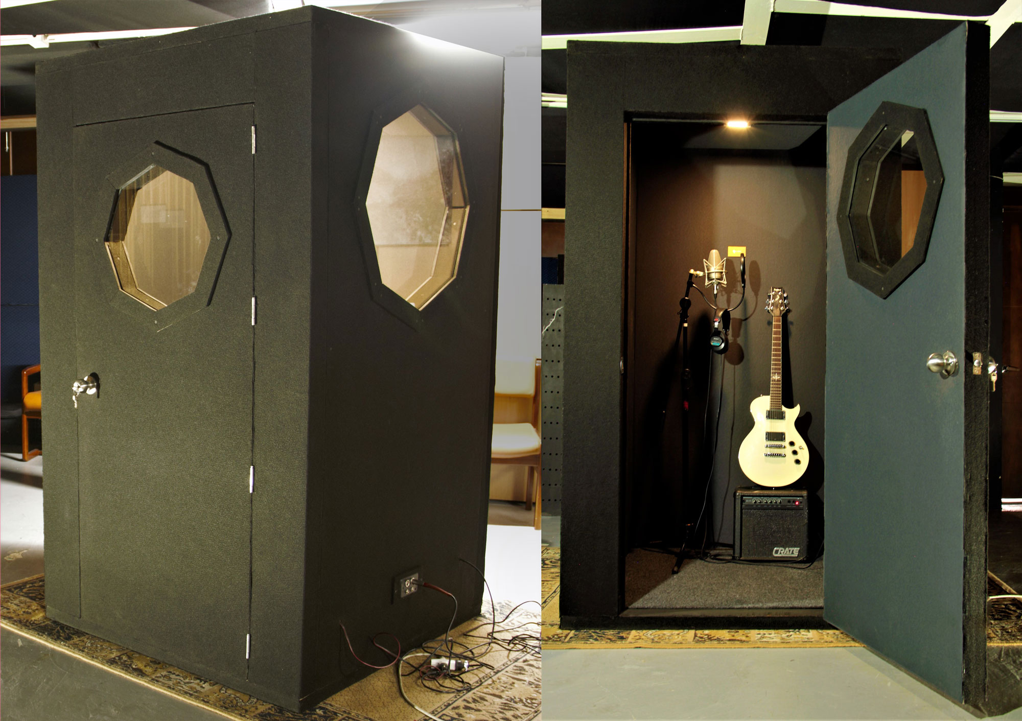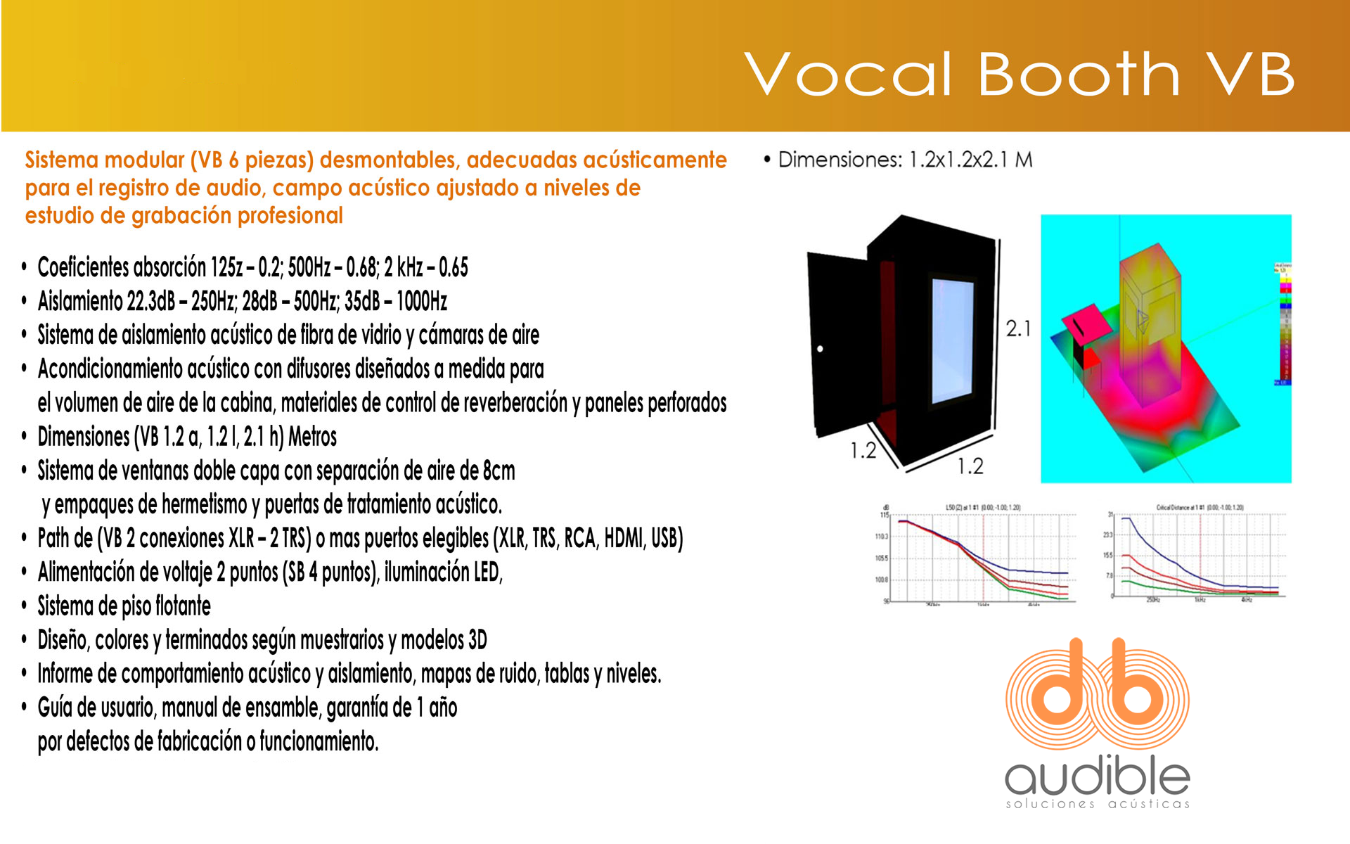 Sistema modular Cabina modular desmontable 6 piezas Dimensiones 1.2mx1.2mx2.1mAlto PATH de 4 conexiones, 2 XLR y 2 TR (envíos) Sistema de piso flotante y absorción de vibraciones, PATH de 4 conexiones, 2 XLR y 2 TR (envíos) Iluminación LED, alimentación de voltaje 2 puntos. Puerta Acústica con capa aislante y sistema de hermetismo, ventana doble capa 0.3mx0.4m colores disponibles gris, negro o azul (purpura, color de lanzamiento) (colores adicionales con recargo) GALERÍA